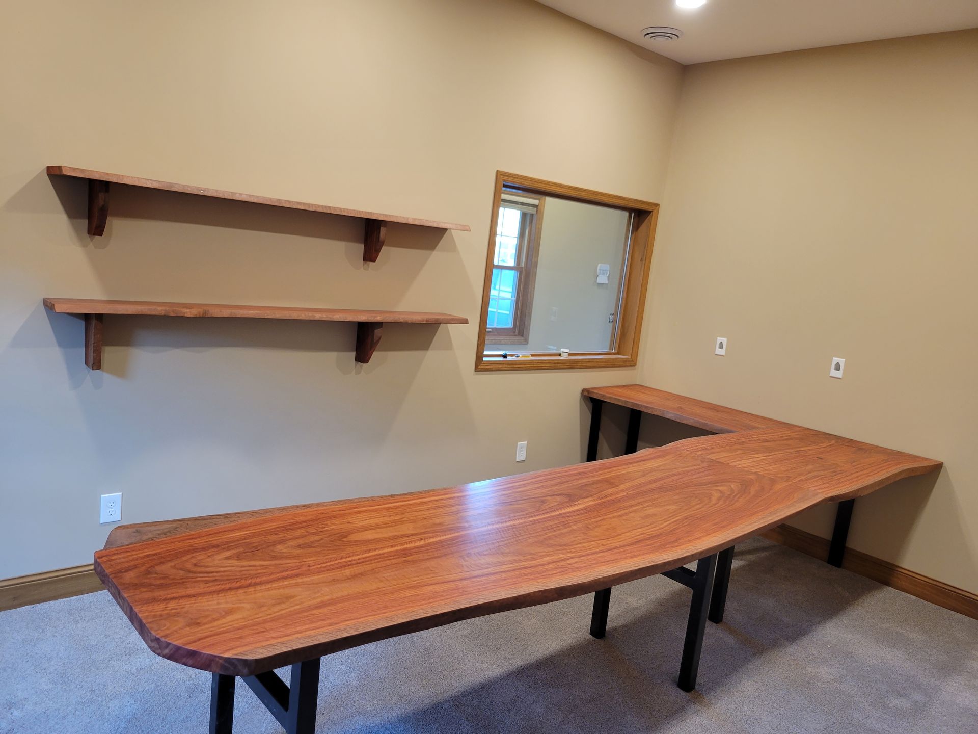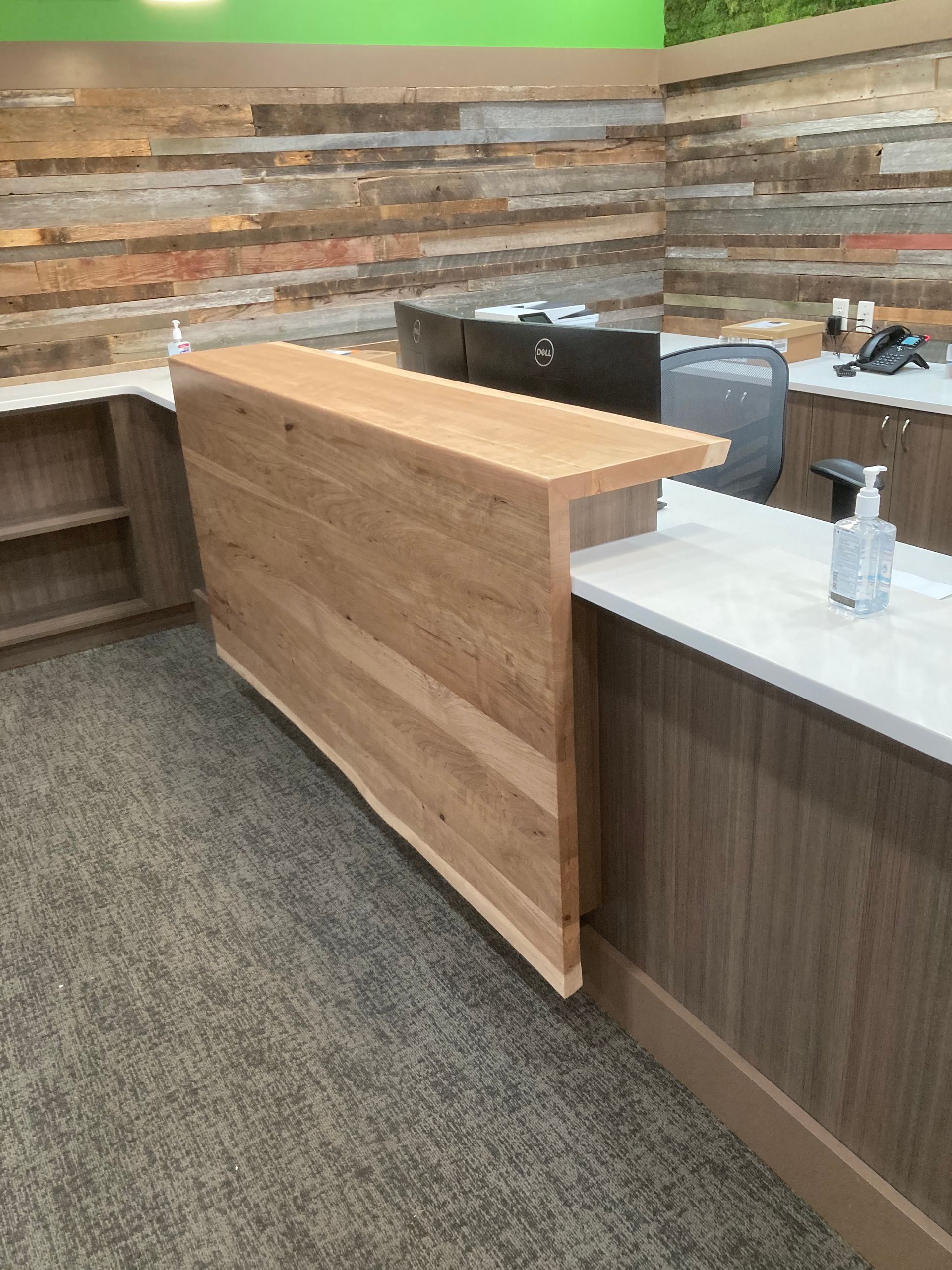 The Natural Edge builds furniture for use in commercial settings: Desks, islands, bar tops, countertops, credenzas, shelving, and special projects.